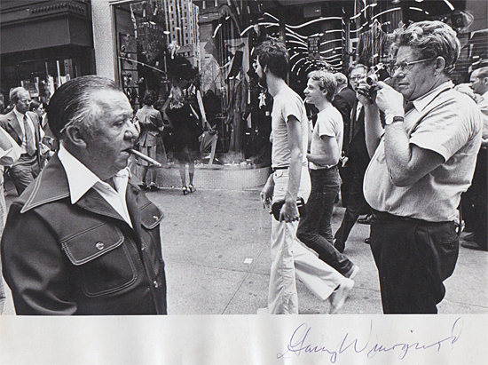 My Street Photography Workshop With Garry Winogrand Two weeks with a master of street photography, and his street photography tips that changed my life. Here's everything Garry Winogrand taught me about street photography. By Mason Resnick My two-week workshop with street photography pioneer Garry Winogrand began in a third floor classroom above crowded Nassau Street in lower Manhattan in August 1976. We spent the first day looking at his portfolio. Winogrand's photos showed an amazing lack of adherance to any rules of composition. Like the streets below, the images were filled with people in motion. There was a precarious, dynamic balance between humor and loneliness in the odd angles--an unfamiliar but powerful combination. ![]() Photo © 1976 by Mason Resnick; all photos accompanying this article were taken during the workshop with Garry Winogrand. (That's him behind the woman with the big purse, watching me.) Winogrand's perplexing teaching styleWe looked at the portfolio without hearing a word of explanation. Winogrand spoke little. He seemed bored and restless, uncomfortable about being stuck in a classroom. When he did talk, his raspy voice reminded me of a a New York cabdriver's. A few times, people tried breaking the awkward silence with a question that was answered with barely a monosyllable. We had a coffee break. Winogrand still wasn't talking. He seemed to be waiting for us to ask him to tell us something, but whatever he had to say wouldn't come easily. We struggled to find questions, hoping one would coax some information out of him. Winogrand broke one long silence by telling an off-color joke. We went home after four hours, perplexed. What had we learned? The next day, Tuesday, was a bit better--the questions came faster, there were fewer silences--But ultimately just as perplexing. Winogrand told us that anything was photographable. He said that we only make the pictures we know; it is hard to break from our preconceptions about how something should look photographed. He told us to let what we see determine where the edges of the photograph go. He challenged us to forget our preconceptions about how to photograph something. "A photograph," he said, "is the illusion of a literal description of how the camera saw a piece of time and space." I wanted to know what technique Winogrand used to get his best shots, and all he'd talk about was a strange, esoteric theory! By Wednesday, the students were getting restless. We had a gripe session with the program director; several students were ready to drop out. The direcor confided that Winogrand doesn't make learning easy; be patient, he earged, it's worth it. If we weren't satisfied by the weekend, he'd give us a refund. ![]() Photo © 1976 by Mason Resnick The breakthrough!Back to class. After an hour or so of Winogrand's interminable jokes and more coffee, the whole exercise seemed futile. Suddenly, almost in exasperation, he said, "Aww, let's go out and take some pictures."That's when the class started. He opened his camera bag. In it were two Leica M4's, equipped with 28mm lenses and dozens of rolls of Tri-X. The top of the bag was covered with yellow tabs. He told us he wrote light conditions on the tabs and put them on rolls as he finished them so he would know how to develop them. As we walked out of the building, he wrapped the Leica's leather strap around his hand, checked the light, quickly adjusted the shutter speed and f/stop. He looked ready to pounce. We stepped outside and he was on. We quickly learned Winogrand's technique--he walked slowly or stood in the middle of pedestrian traffic as people went by. He shot prolifically. I watched him walk a short block and shoot an entire roll without breaking stride. As he reloaded, I asked him if he felt bad about missing pictures when he reloaded. "No," he replied, "there are no pictures when I reload." He was constantly looking around, and often would see a situation on the other side of a busy intersection. Ignoring traffic, he would run across the street to get the picture. Incredibly, people didn't react when he photographed them. It surprised me because Winogrand made no effort to hide the fact that he was standing in way, taking their pictures. Very few really noticed; no one seemed annoyed. Winogrand was caught up with the energy of his subjects, and was constantly smiling or nodding at people as he shot. It was as if his camera was secondary and his main purpose was to communicate and make quick but personal contact with people as they walked by. At the same time, as he passed from shadow into sunlight into shadow again, he was constantly adjusting his meterless camera. It was second nature to him. In fact, his first comment right out the door was, "nice light--1/250 second at f/8." ![]() Photo © 1976 by Mason Resnick I tried to mimic Winogrand's shooting technique. I went up to people, took their pictures, smiled, nodded, just like the master. Nobody complained; a few smiled back! I tried shooting without looking through the viewfinder, but when Winogrand saw this, he sternly told me never to shoot without looking. "You'll lose control over your framing," he warned. I couldn't believe he had time to look in his viewfinder, and watched him closely. Indeed, Winogrand always looked in the viewfinder at the moment he shot. It was only for a split second, but I could see him adjust his camera's position slightly and focus before he pressed the shutter release. He was precise, fast, in control. Inspired, I shot eight rolls that day. Up all night printing, the next morining I excitedly showed Winogrand some 50 workprints. He divided them up into a good and a bad pile, then handed them to me without comment. I pressed him for details: what made this print work? Why did he like that shot? He simply said, "It's a good photograph." He told me to take a close look at the shots he liked and keep shooting. I was disappointed, but I felt challenged. ![]() Photo © 1976 by Maso